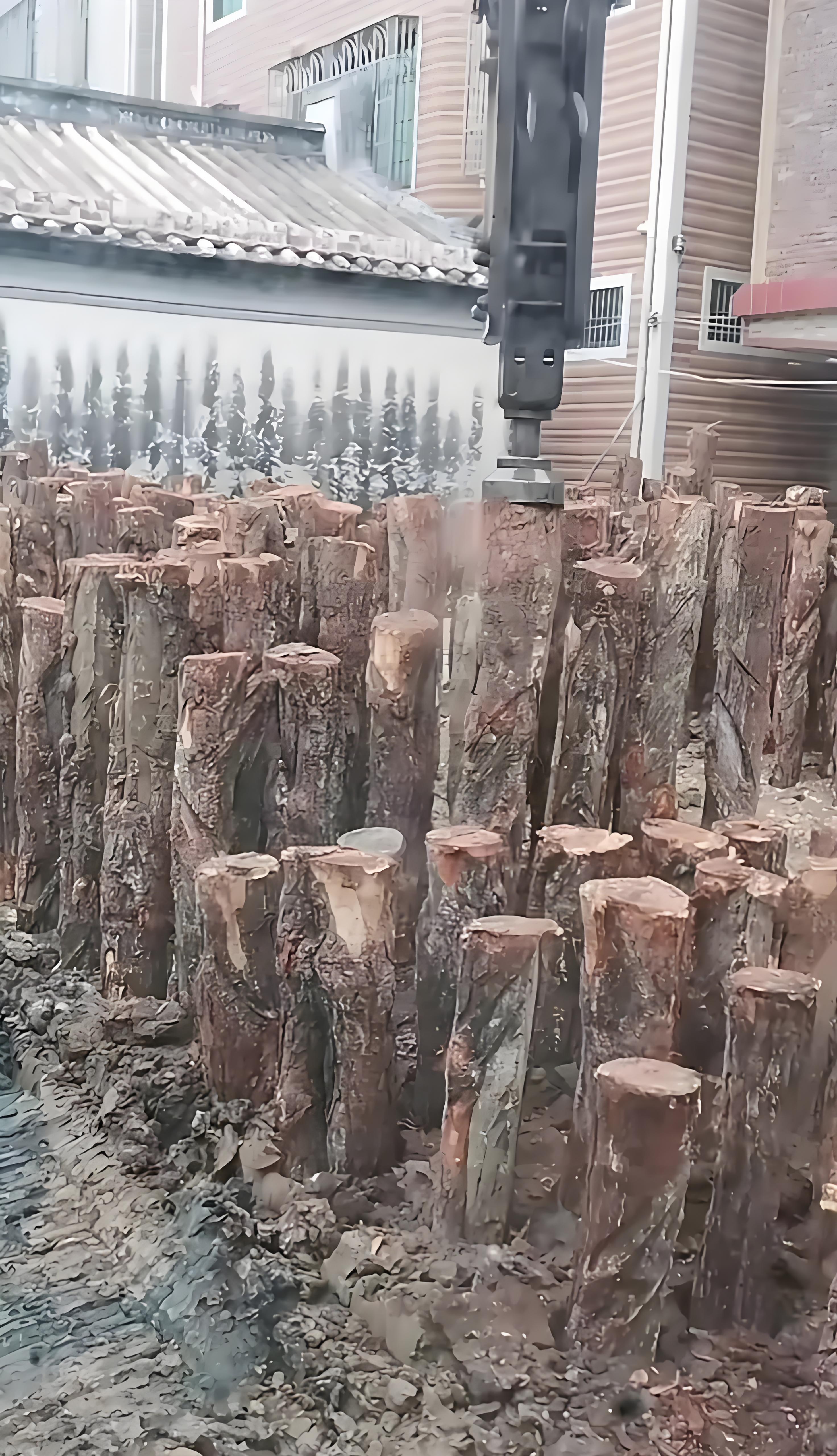 農(nóng)村建房工期通常比較緊張,松木樁施工更靈活:不用復(fù)雜設(shè)備,小型打樁機(jī)甚至人工輔助就能打,100 根樁 1-2 天就能完成;而且松木樁重量輕,運(yùn)輸?shù)睫r(nóng)村小路也方便,不會(huì)像水泥樁那樣需要大型卡車(chē)。